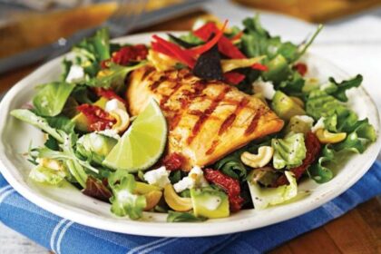 Tem mesmo de provar este salmão crocante com salada grega