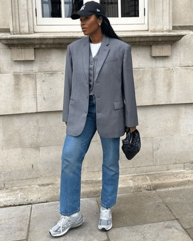 É neste cenário que surge um novo protagonista: o ténis cinza. Nem tão claro quanto o branco, nem tão pesado quanto o preto, este tom intermédio tem conquistado terreno entre as fashionistas. Versátil, elegante e mais prático no dia a dia, o cinza tornou-se rapidamente um favorito. Parte deste fenómeno deve-se à influência da New Balance, marca que elevou esta tonalidade a objecto de desejo com modelos icónicos como os 530, 574 e 990, amplamente vistos no street style internacional.