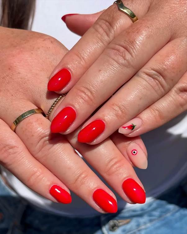 9.Vermelho clássico renovado intemporal, com brilho extra e profundidade. Um clássico que se mantém atual e poderoso, ideal para quem gosta de unhas marcantes.