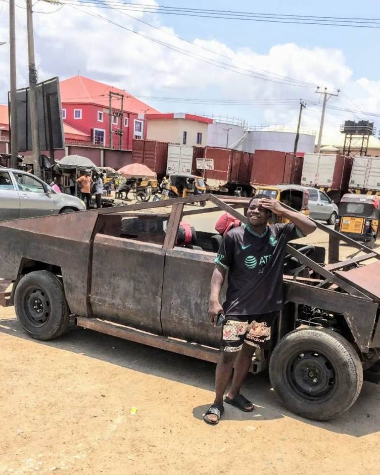 Na Nigéria, um jovem entusiasta de tecnologia e mecânica conquista as redes sociais após construir, engenhosamente, uma versão inspirada no Cybertruck — o veículo futurista da Tesla — utilizando somente materiais reciclados e sucata.